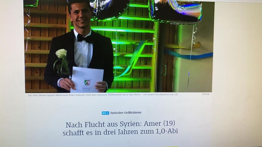 محمود محمد قابوع يحقق المجموع التام في الثانوية العامة بعد فقط ٣ سنوات من قدومه إلى ألمانيا: هكذا عنونت به صحيفة Ruhr Nachrichten الألمانية في مقال لها عن محمود.
