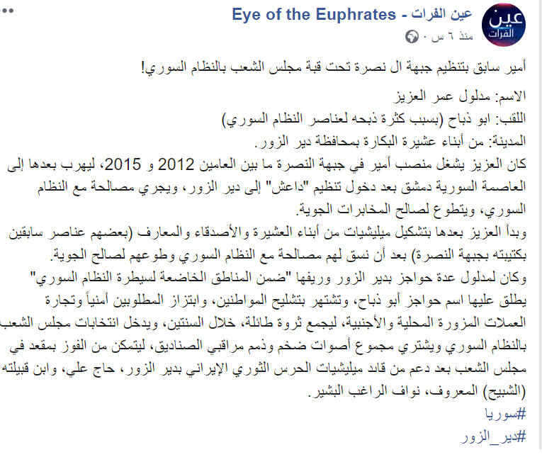المدينة: من أبناء عشيرة البكارة بمحافظة دير الزور.