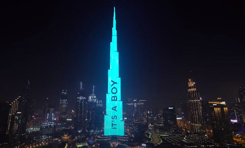 ونشر الزوجان النشطان على منصات التواصل الاجتماعي مقطع فيديو وهما بصحبة أصدقائهما وزوار المنطقة وهم ينظرون إلى واجهة البرج التي تزينت بالألوان، ثم بدأ العد التنازلي لينتهي المقطع بأن ظهرت عبارة “إنه ذكر” على واجهة البرج، وسط فرحة الزوجين الممزوجة بدموع الفرح.