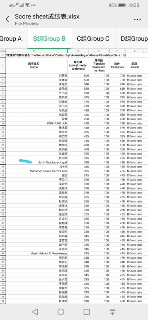 المسابقة العالميةورداً على سؤال منصة (تأكد) لممثل الجهة المنظمة في لبنان بشأن الجهات المُشرفة على المسابقة قال إن الإشراف يكون فقط من قبل الشركة الصينية التي تضم كوادر تربويين متخصصين في مجال علم الحساب الذهني، وفق قوله، نافيا وجود اتحاد رسمي دولي متخصص بالإشراف أو بتنظيم مثل هكذا مسابقات.كأس العالم للحساب الذهني توسعنا في البحث عن مسابقات الحساب الذهني باستخدام محرك البحث (غوغل)، وحصلنا على عدة نتائج مرتبطة أبرزها ما نُشر على الموسوعة الرقمية (ويكيبيديا) حول مسابقة (كأس العالم للحساب الذهني) الذي تقول الموسوعة أنها “مسابقة دولية للحاسبات العقلية، تعقد كل عامين في ألمانيا”. وبحسب الموسوعة ذاتها -التي تسند كل معلومة فيها لمرجع واضح- فإن النسخة الأولى من المسابقة أقيمت في ألمانيا 30 تشرين الأول/أكتوبر من العام 2004 في حين ألغيت نسخة العام الحالي التي “كان من المخطط عقدها في الفترة ما بين 21 إلى 23 أغسطس 2020 في Heinz Nixdorf Museums Forum (أكبر متحف كمبيوتر في العالم) في بادربورن ، ألمانيا، وذلك بسبب جائحة كورونا وتأجيلها إلى وقت غير معلوم”. واللافت أن مسابقة كأس العالم للحساب الذهني والتي تقام في ألمانيا، وهي مسابقة معروفة بين أوساط المهتمين في هذا الشأن، يشارك فيها عدد محدود، مثل نسخة عام 2004 حيث شارك 17 شخصا من 10 بلدان، وهو أيضا ما يعيدنا إلى التساؤل بشأن حرص الشركة الصينية على انخراط أكبر عدد ممكن من المشاركين دون اللجوء مثلا إلى تصفيات فيما بينهم، وإعطاء الجائزة الكبرى والمراكز الأربعة لآلاف المشاركين، في ما يبدو أنها محاولة استرضاء.وخلال تواصلنا مع السيد (محمد سويد) أطلعناه على هذه النتيجة، إلا أن رده كان بأن هذه المسابقة – يقصد كأس العالم للحساب الذهني- لا تعتمد على آلة المعداد فقط، وإنما تعتمد على كافة الأساليب التي يتعلمها الطالب بعلم الحساب الذهني، في حين أن مسابقتهم متخصصة للطلاب الذين يعتمدون على نمط الحساب الذهني باستخدام آلة المعداد، لافتاً إلى أن أحد طلابهم ويدعى (محمد المير) شارك فيها في إحدى الدورات من المسابقة العالمية وحصل على المرتبة الأولى، إلا أن منصة (تأكد) لم تتمكن من التحقق من صحة ذلك لعدم ورود اسم الطالب المشار إليه في سجل الفائزين بالمراتب الأولى خلال النسخ السابقة من المسابقة على (ويكيبيديا).